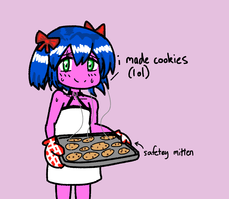 [www.bury.pink]_bow_red_bow_green_eyes_bury_pink_english_text_split_mouth_food_dress_white_dress_holding_sweaty_standing_holding_food_purple_background_cookie_mittens_baking_-_3118.jpg