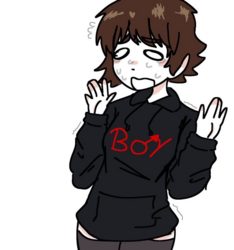 this is an accurate depiction of what happens when you call a boy cute, it melts his brain and makes him do stupid things like crossdress and and ummm... Hmmhhhggfghtg uhhhh