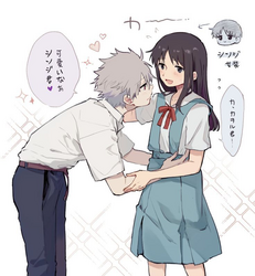 Eh? You've never seen a pair of girlballs before? And you're HOW old?! J-Jeez! Ahahahah! W-Well, we'd better fix that, then! Just close your eyes for a sec, aaaaaaand...